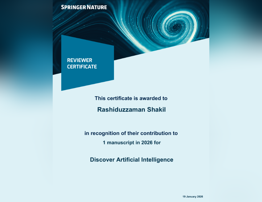 Reviewer in Discover Artificial Intelligence Journal: I have been play a role of a Reviewer in Discover Artificial Intelligence Journal and successfully reviewed one (1) article.